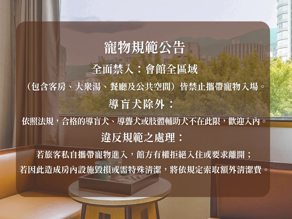 會館全區域(包含客房、大眾湯、餐廳及公共空間)皆禁止攜帶寵物入場。