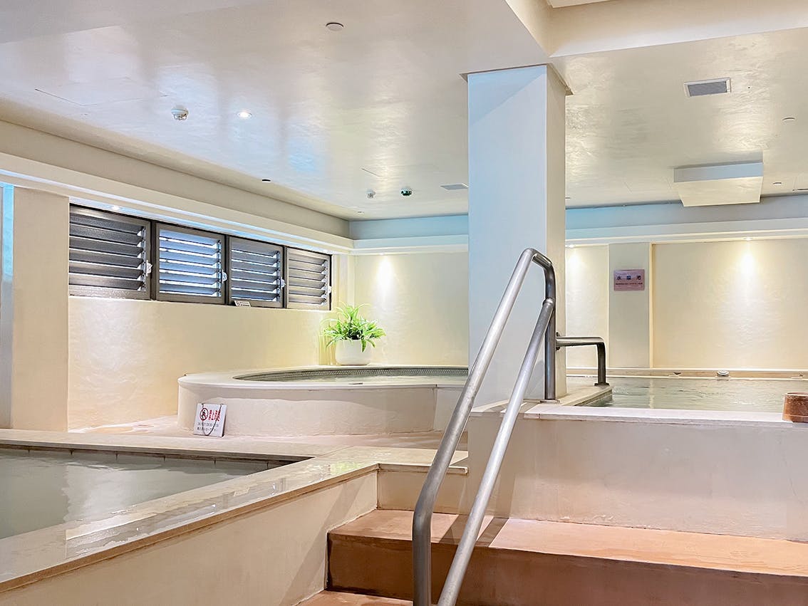 地中海式男女湯 羅馬貴族等級伺候 以素潔的米白為室內基調