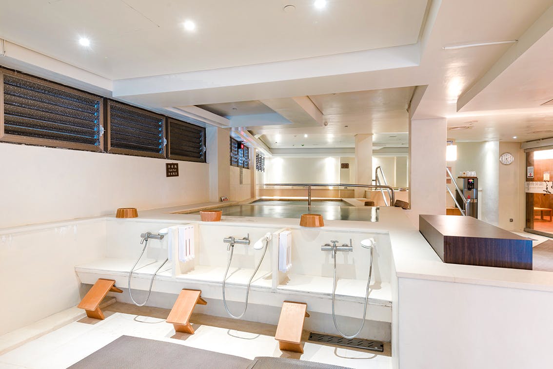 地中海式男女湯 羅馬貴族等級伺候,以素潔的米白為室內基調,